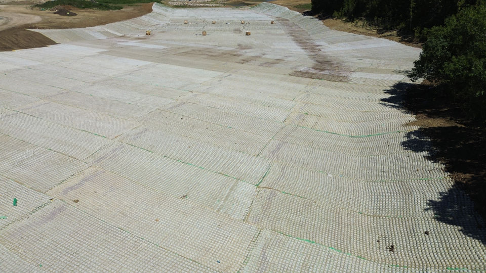 365,000 square feet of Flexamat Plus was specified on this project. The first Flexamat deliveries were made in mid July, 2023 and all of the mats were installed by the first week of September, 2023. Vegetation was already growing through the mats installed in August as the project was completed.