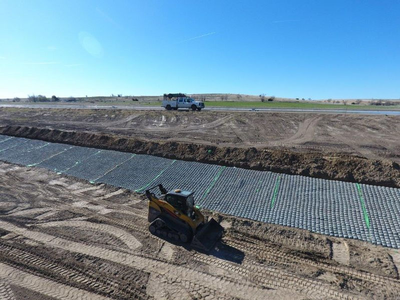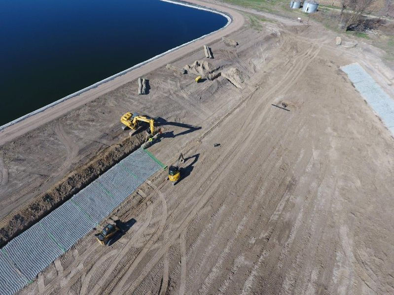 94,000 square feet of Flexamat Plus was installed over five days to armor the retention basins at waste water treatment facility including - 187 - 16’ x 18’ rolls & 125 - 16’ x 20’ rolls
