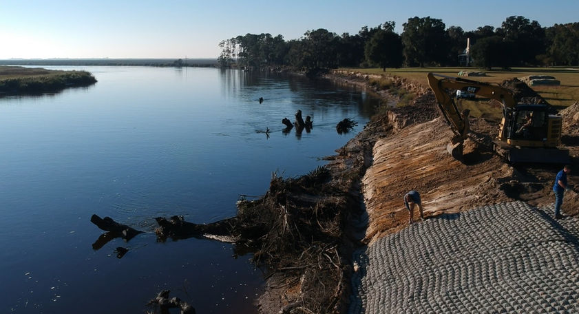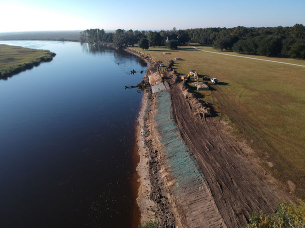 Le long d’une longueur de 1 800 pieds de rivage côtier, le propriétaire a estimé qu’il avait perdu 10 à 15 pieds de propriété en seulement cinq ans à cause de l’érosion. Le propriétaire a contacté une société d'ingénierie au sud de Charleston, en Caroline du Sud, pour obtenir de l'aide. Initialement, la société d'ingénierie prévoyait d'utiliser des enrochements pour la stabilisation des berges. En raison de la taille du projet, des centaines de camions d'enrochement seraient nécessaires. Les routes sur la propriété ne pouvaient pas accueillir des centaines de camions, la roche devrait donc être transportée sur le site par barge. Les estimations de coûts pour la solution d’enrochement s’élevaient à plus d’un million de dollars. De plus, l’enrochement ne fonctionnait pas bien le long d’une autre section du littoral de la propriété. La société d'ingénierie a recherché d'autres solutions et a trouvé Flexamat.